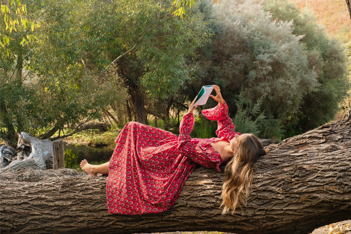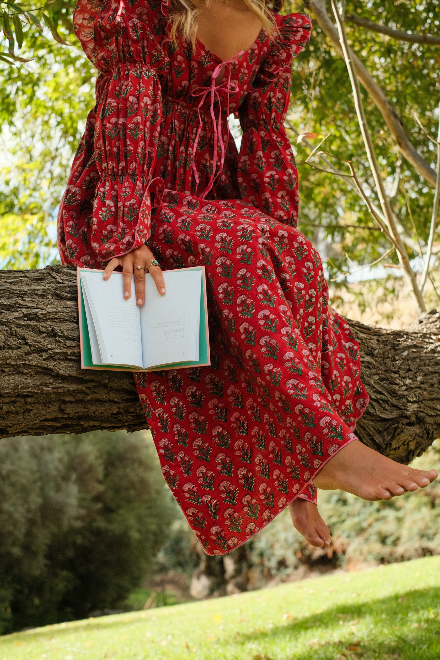 A beloved revival from our Midsummer Dreams Spring–Summer '23 capsule. The Eleanor Dress returns with its signature full-length sleeves, empire waist, and a contrast pink tie-up lace front. Light, airy, and effortlessly romantic, it’s made for barefoot walks through wildflowers and gatherings that linger into twilight.