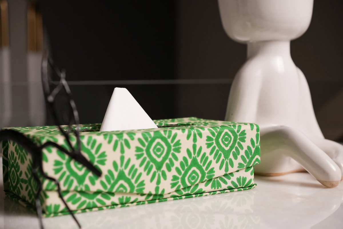 Artisan-crafted tissue boxes designed in Jaipur using hand-block printed cotton fabric. Lined with handmade paper and finished with care, each piece is a fusion of function and heritage.