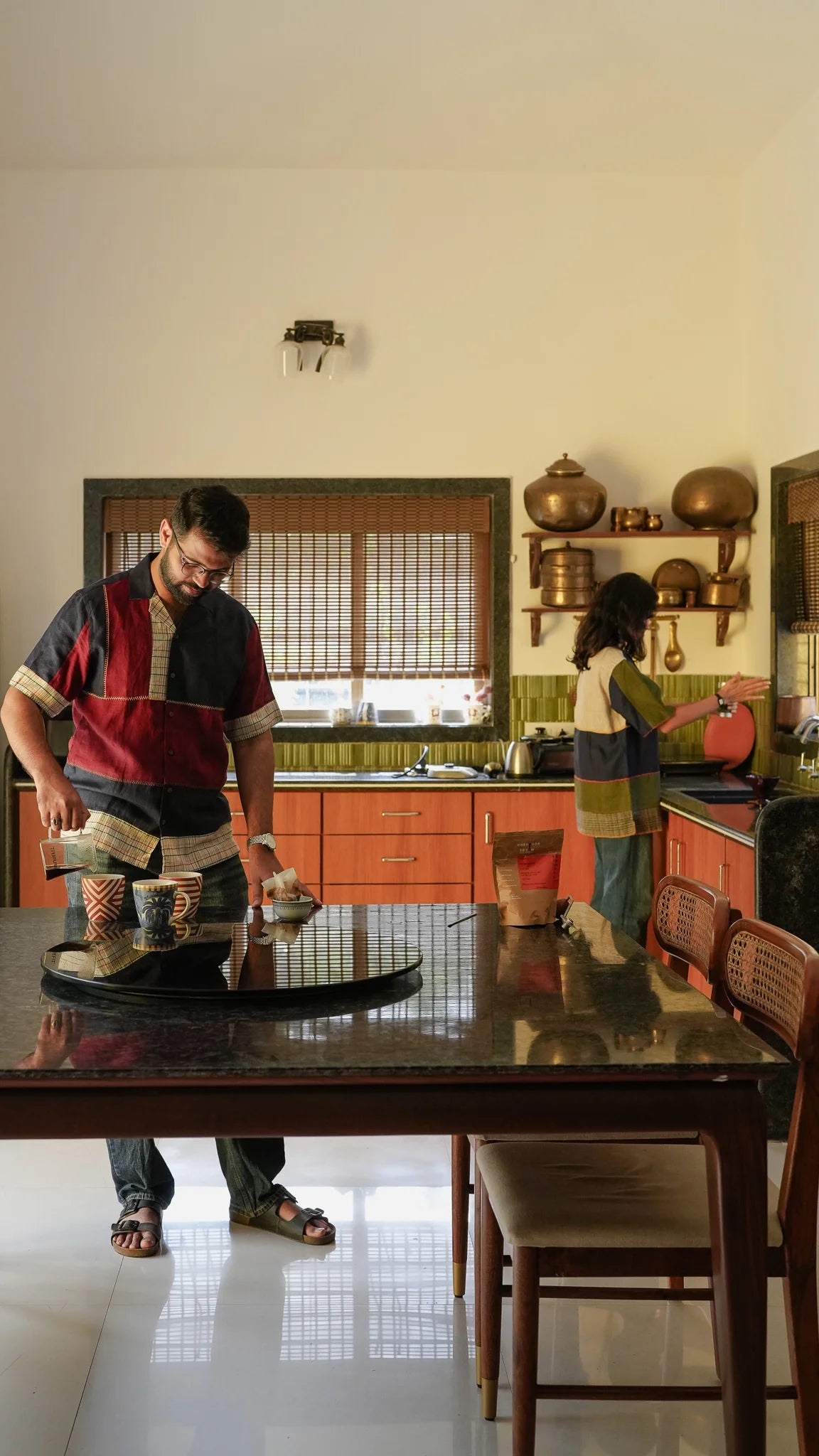 The shirt is designed to reflect the surprises and variations of life: "A patch here, a stitch there. Shirts, little like life." The piece combines hand-embroidered edges with decorative patchwork blocks. Patchwork is a global, age-old textile art not exclusive to one region, where small pieces of fabric are sewn together to create a larger design. Historically, it originated from necessity, conserving fabric by reusing scraps, but evolved into a sophisticated art form (seen globally in Indian Kantha traditions). This technique transforms multiple fabric scraps (100% European linen and hand-woven cotton) into a unique, hand-crafted work of enduring quality.